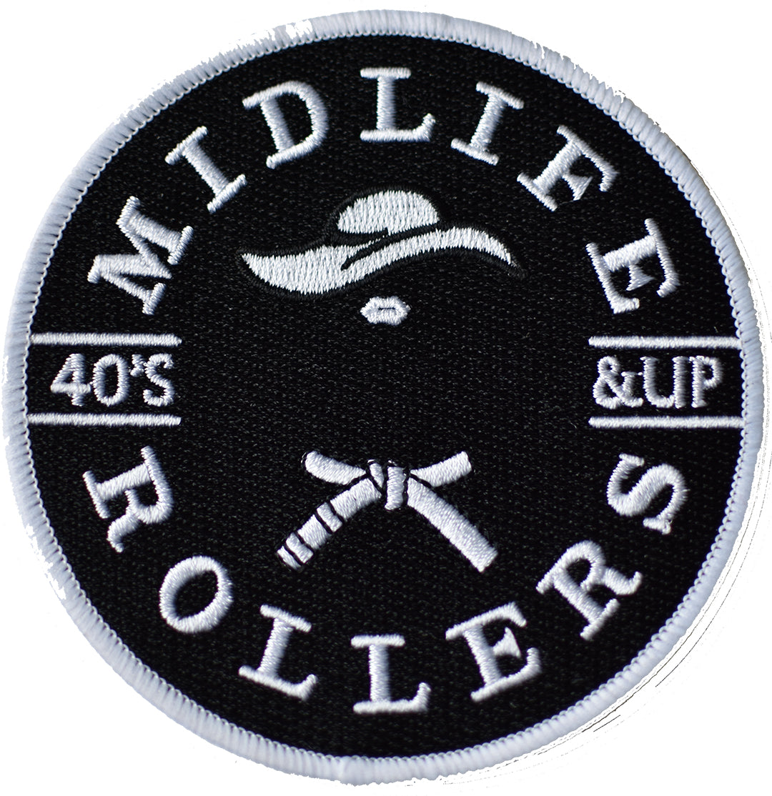 4" Midlife Roller White Belt patch. Merrowed Edge border embroidered patch. Can be Ironed on or sewn. We Highly Recommend Sewn for durability.